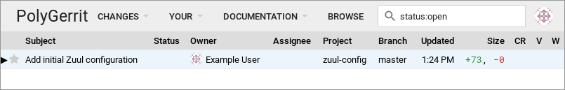 Visit http://localhost:8080/dashboard/self and open the zuul-config change you just uploaded.